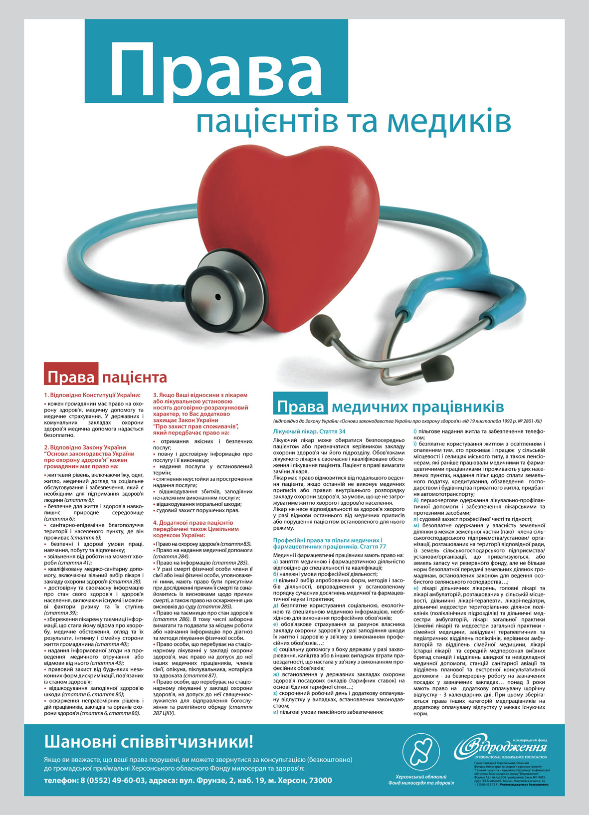 Виконаний Херсонським обласним Фондом милосердя та здоров’я за фінансової підтримки Міжнародного Фонду “Відродження”. |